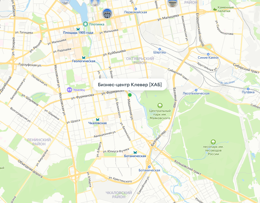 Клевер [ХАБ] выгодно расположен на гостевом маршруте, в центре города, в 15 минутах езды от аэропорта Кольцово, с удобным выездом на ЕКАД. Вокруг находится развитый современный район, с удобной транспортной доступностью.